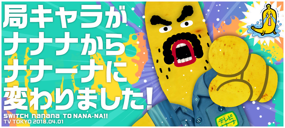 株式会社テレビ東京のキャラクターは本日4月1日(日)よりテレビ東京バナナ社員「ナナナ」に代わり、4月6日(金)より放送が始まる新番組『テレビ野郎 ナナーナ』の主人公である、テレビナナーナのディレクター「七岡」が務めることになりました。