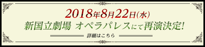 - 2018.04.092018年8月22日(水)新国立劇場 オペラパレスにて再演が決定いたしました!