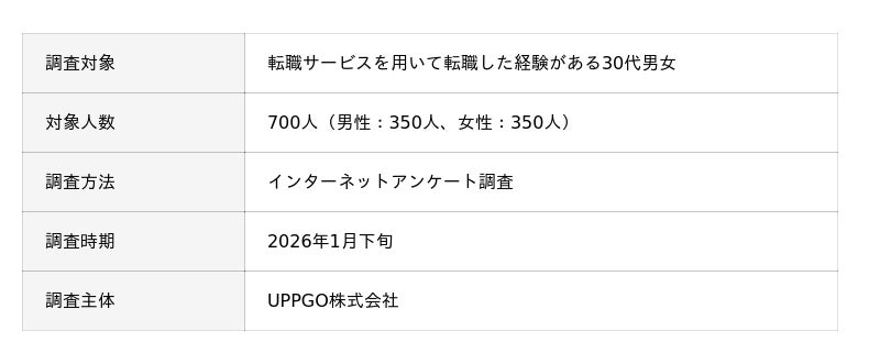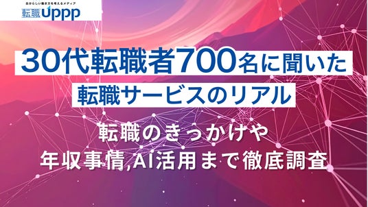 UPPGO株式会社(本社:東京都品川区西五反田、代表取締役社長:芳賀一生)が運営する転職メディア「転職UPPP」が、30代の転職経験者700人に転職活動や転職エージェント・サイトに関する独自のアンケート調査を実施しました。