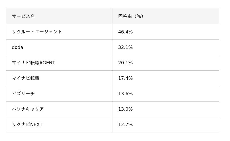 圧倒的な求人数を誇る「リクルートエージェント」と「doda」の2強がベースとして使われているのは20代の傾向とほぼ同じでした。