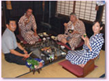 食堂の主人に次のバスが出ている塩尻まで送ってもらうことに。塩尻から松本を経て飛騨高山方面へ向かう。途中日が暮れてきたので、アナウンスのあった平湯温泉で下車、宿を探す。空室の有った「ひらゆの森」で泊まることに。飛騨牛や山の幸の夕食の後、内湯と露天の両方を楽しむことが出来る貸し切り風呂になんと3人で入浴。明日は目的の富山県氷見に着こうと誓う。