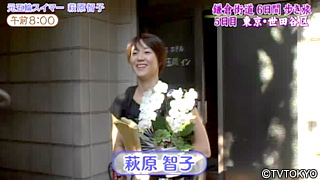 3区担当は萩原智子。残された距離の踏破を目指して、アスリートならではの健脚を披露!無事ゴールの鶴岡八幡宮ににたどり着くことは出来るのか!?