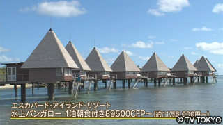◆内容 水上バンガロー 1泊朝食付き89500CFP(約11万6,000円〜)