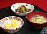 <栗ごはん・長芋とイカの煮付け・かき玉汁>