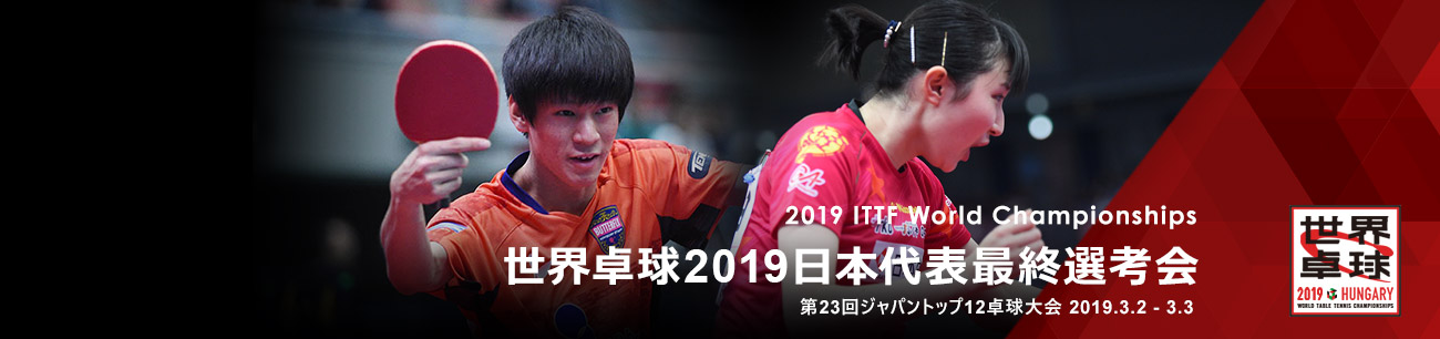 2019年4月23日に開幕する「世界卓球2019(個人戦)」に出場できる選手は男女それぞれ5名ずつ。この大会の優勝者にはその最後の1枠が与えられる。男女各12名が出場。3名×4組の予選を戦い、各組1位が決勝トーナメントに進出。
