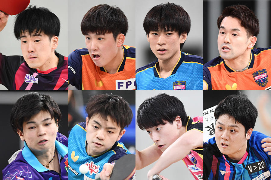 男子シングルス ベスト8進出 左上から吉山僚一、張本智和、戸上隼輔、及川瑞基、田中佑汰、宇田幸矢、篠塚大登、曽根翔 PHOTO:ItaruChiba