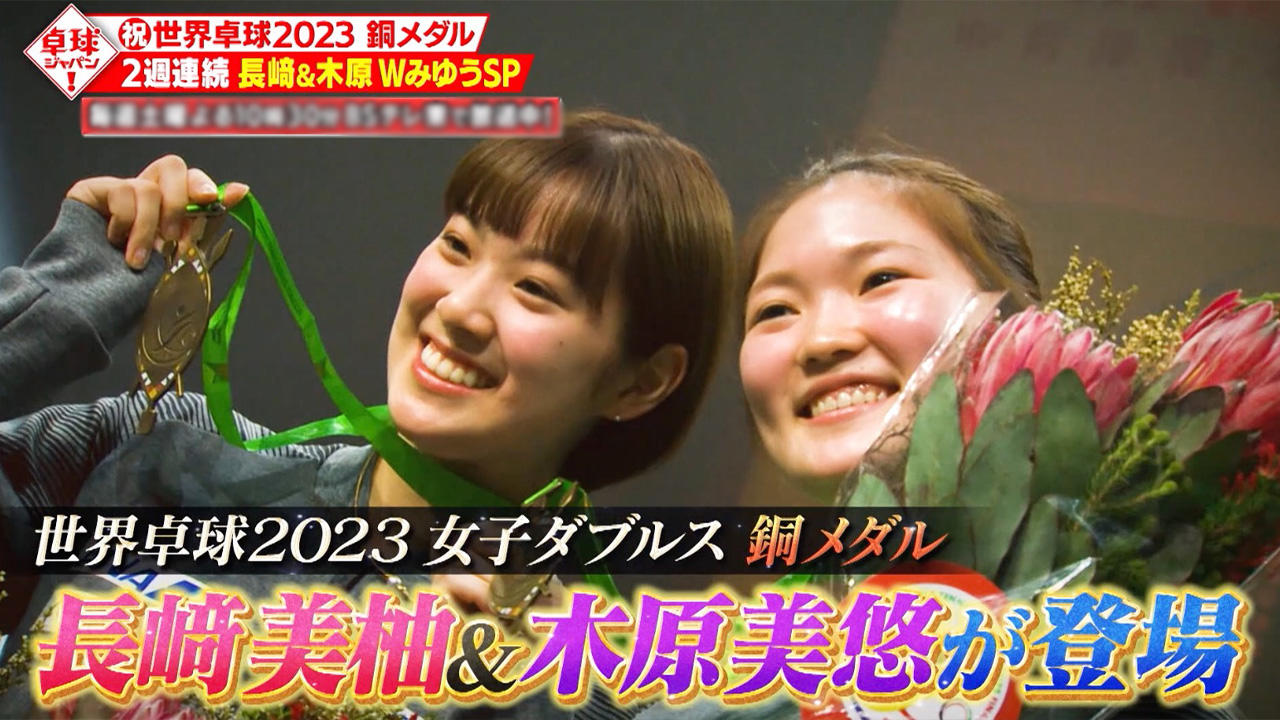 6月24日放送の『卓球ジャパン!』は、世界卓球2023女子ダブルスで銅メダルを獲得した長﨑美柚&木原美悠(木下グループ)の"Wみゆう"が揃ってゲスト出演。世界卓球での戦いぶりを2週にわたってDEEPに語ってくれることになった。