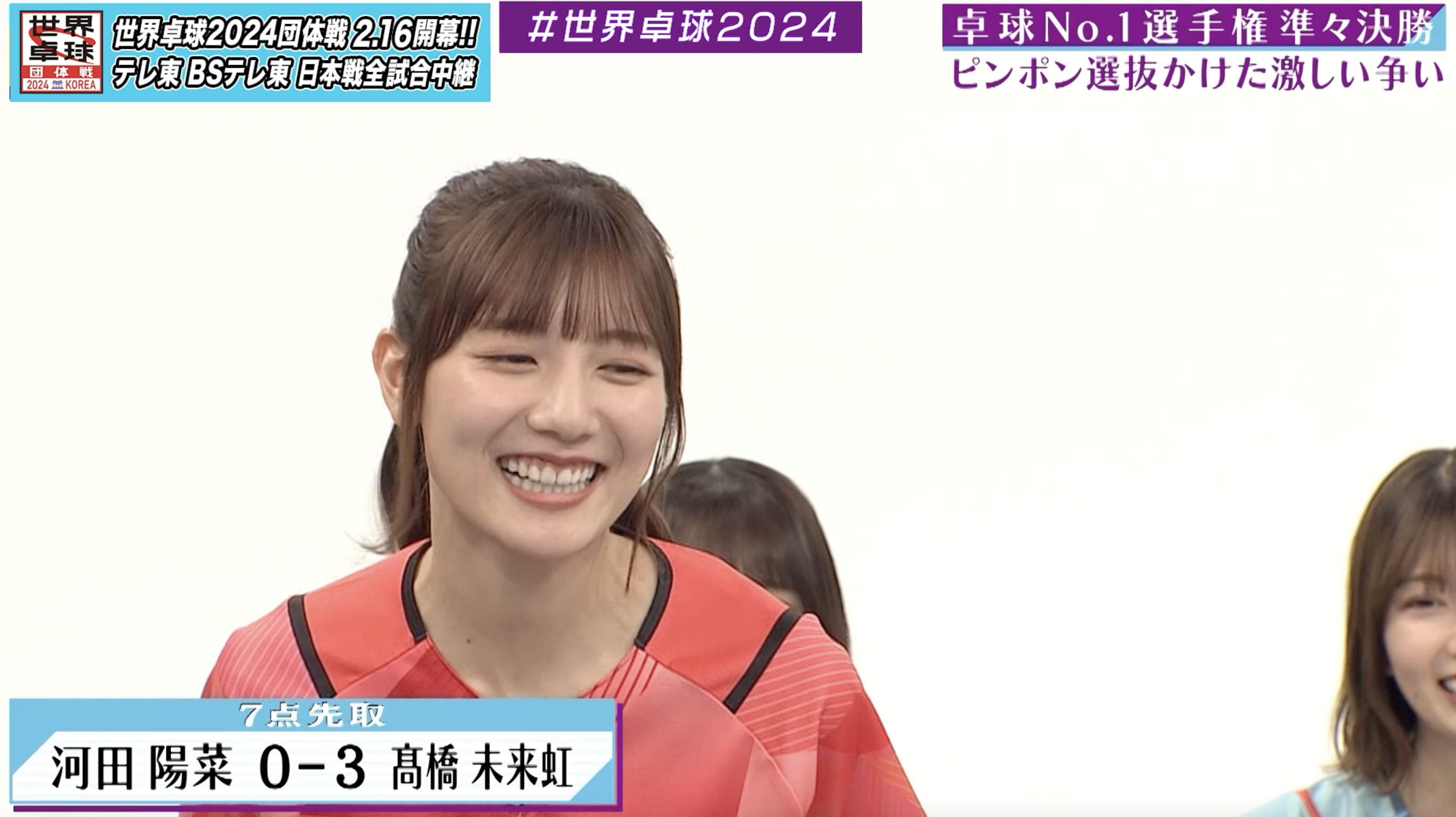 【日向坂46卓球No.1選手権】準々決勝 河田陽菜 vs 髙橋未来虹|第2弾 団体戦 BSテレ東で1月3日(水)夜11時放送