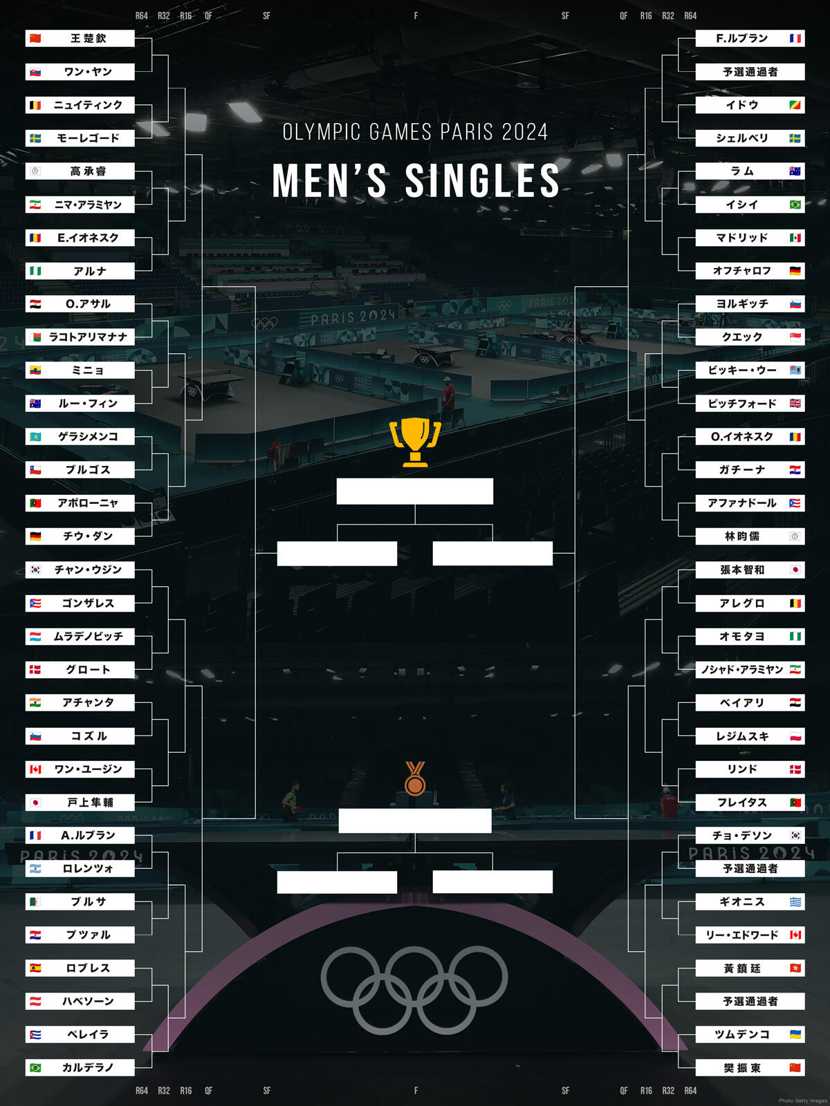 パリオリンピック 卓球競技 男子シングルスドロー Photo Getty Images