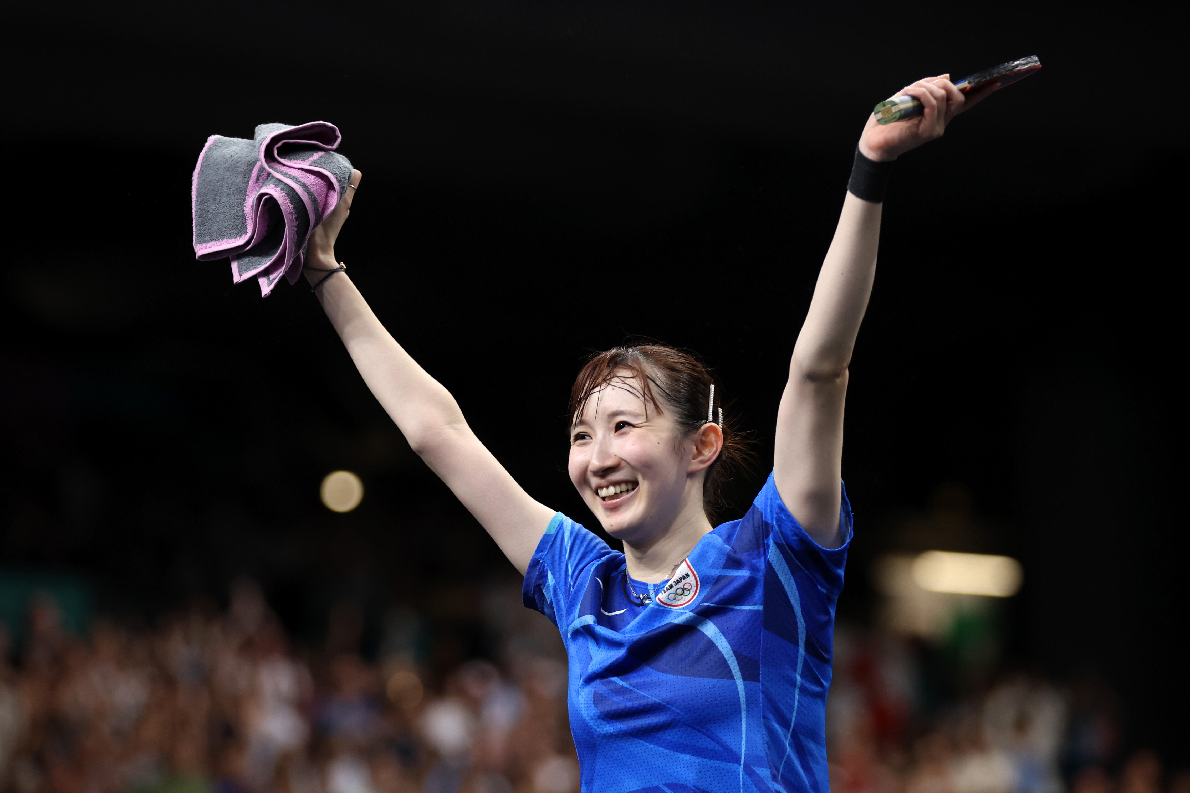 8月1日、女子シングルス準々決勝で早田ひな(24=日本生命/世界ランク5位)がピョン・ソンギョン(23=北朝鮮/同168位)をゲームカウント4-3で破り、準決勝進出を果たした。