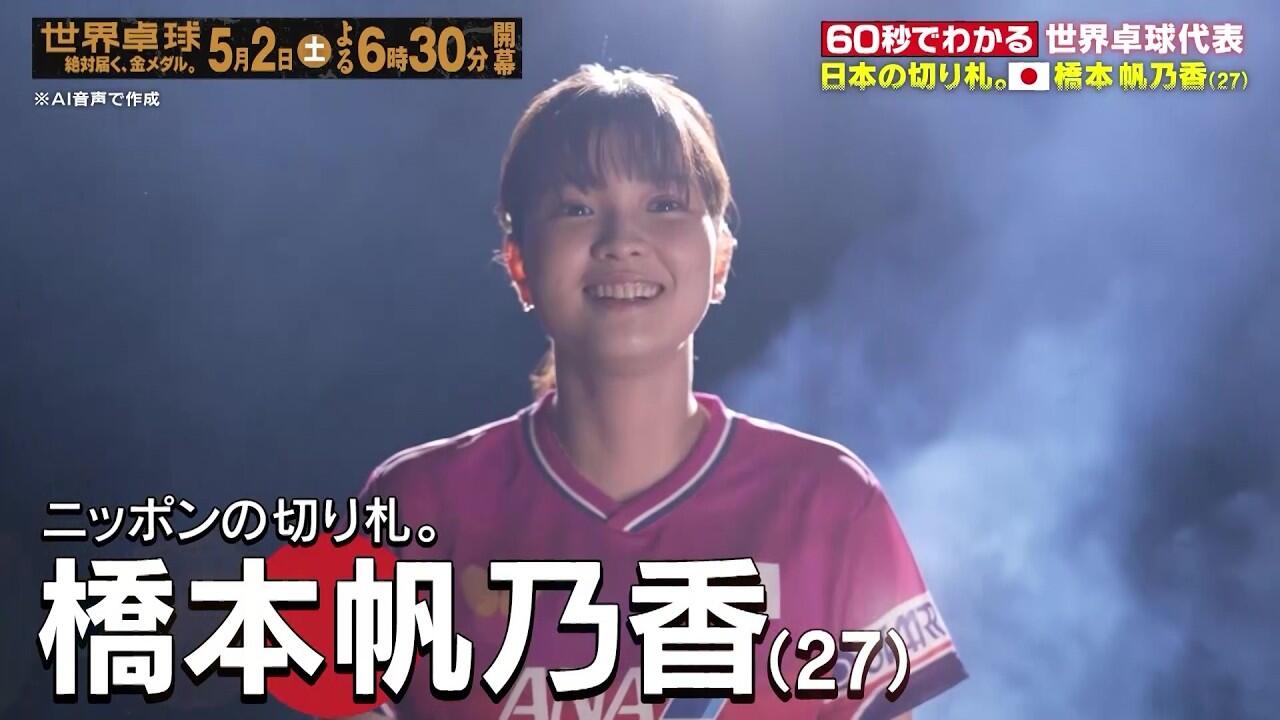 今年は団体戦。世界のライバル、そして卓球王国中国を倒し「100年目の世界一」をつかみとる。この世界卓球で届けたいのはメダルではなく、オリンピックを超える真の世界一決定トーナメントでチームジャパンが約半世紀ぶりにつかむ世界一、金メダルの瞬間だ。卓球発祥の地ロンドンで100周年の節目。卓球NIPPONの真価を世界に示すとき。絶対届く、金メダル。