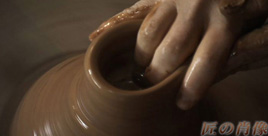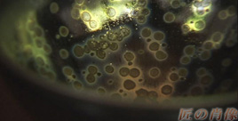「一番僕が大切だと思うのは黒だと思うんです。この焼き物は黒が無限に近い奥行きをしめしてくれるんです。これの上にこの青い光彩が発色することによって、すごく美しいものがでてくるんです。手の中にすっぽりと入る器の中に、芸術性っていう美しさを見たなと。」