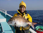 マダイは秋から冬になると越冬場所を求めて水温の低下と共に深場に落ちる。エサの多い場所に集まって群れで移動するようになる。うまく群れにあたれば冬場もマダイは釣れる。晩秋からの三浦半島は型は小さいものの絶好調が続いた。今年の玲子は6kgのマダイが目標だ。2001年中に必ず「6kgのマダイをGET!」と熱く語る。