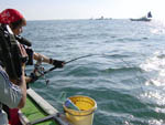 カモシ釣りをやっている地区は勝浦近辺と御宿に限らている。古くから行われている漁法だが、遊漁の歴史はそう古いものではなく、ここ20数年の間だという。カモシ釣りは、カモシ袋という、丸い口金に30cmほどの長さの布袋を縫い付けたものの中にミンチを詰めて使う外房勝浦の伝統釣法。多少太めの仕掛けで誘い掛け、コマセの煙幕の中に刺し餌を同調させるのが決め手となる。狙いはマダイ、そしてヒラマサ。千葉勝浦(松部港出船)からカモシ釣りで狙います。そして今が旬、神子元島沖横根のワラサ釣りもお送りします。