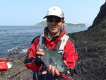 ここ数日クチブト、マダイなどがアタっているとの情報のもと、二人はグレ、マダイ、チヌ三種類の30センチ以上を検量対象にしてその総重量で競うという独自のルールを取り決め勝負する。第三世代らしい磯釣りの楽しみ方、攻め方など爽やかな釣りをみせてくれる。 |