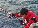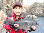 磯の上物釣りをする者ならば誰もが一度は手にしたいと憧れる魚…それは60センチを超す大型のオナガグレ。同じグレでもクチブトグレとは全く性質の違うといわれるオナガグレだが、大型になればなるほど釣れる確率は低く、一日一尾も姿を見られないことも多い。また強烈なヒキが磯釣り師達を熱くさせる。今回この大型オナガに挑むのは、阿波釣法の名手・江頭弘則。トップトーナメンタートして知られる江頭だが、実は磯の大物師の一面も持つ。そして、大型オナガに魅せられて10年以上オナガばかりを追い続ける若武者・岡崎保仁。二人が目指すのは、四国西南部フィールドの沖の島と鵜来島。大型オナガといえば、男女群島や三宅島など離島のイメージが強いが、四国西南部では近場の磯に夢の60オーバーが乱舞しているのが見えるという。二人は沖の島の名礁・東のハナに上がり大型オナガグレとの激闘を魅せてくれる。 |