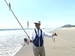 【 ロッド 】 キススペシャル〈並継〉405BX ( 日置 ) 〃 405CX+ ( 横山 ) 【 リール 】 スーパーエアロスピードキャスト ( 日置・横山 ) 【 ライン 】 XDYNE KISU SPECIAL 0.6号 ( 日置 ) 〃 0.8号 ( 横山 ) 〔日置基本仕掛け〕 モトス:フロロカーボン2号/ハリス:フロロカーボン0.8号~1号/固定式天秤30号 ハリ:キスR5~7号・キス競技用ヒネリ5~7号 〔横山基本仕掛け〕 モトス:フロロカーボン2号/ハリス:硬いナイロン0.8~1号/天秤:27~32号 ハリ:5~6号 【 エサ 】 イシゴカイ/チロリ