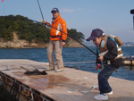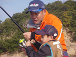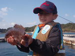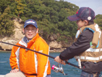 釣り堀といってもあなどるなかれ、紀州の黒潮に育まれたタイ、メジロ、カンパチは強烈な引き。友哉くんはお父さんのサポートの下一生懸命大物に挑みます。一緒に釣り上げた大物に二人で感動。友哉くんがだんだん慣れてきて夢中になる姿もほほえましい・・・。