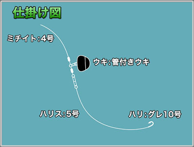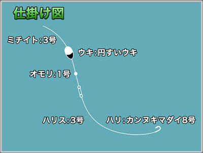[ 使用したタックル ] 〈 ロッド 〉 【湾内・磯】 BB-XSPECIAL T2 48-53遠征 NZ 〈 リール 〉 【湾内】 BB-Xテクニウム Mg 4000D 【磯】 BB-Xテクニウム Mg 5000 【湾仕掛け】 ミチイト:3号/ウキ:円すいウキ/オモリ:1号/ハリス:3号/ハリ:カンヌキマダイ8号 【磯仕掛け】 ミチイト:4号/ウキ:管付きウキ/ハリス:5号/ハリ:グレ10号