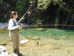 フライフィッシングを得意とする。釣りのモットーは「魚を殺さない」 |