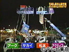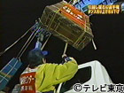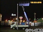 8mの高さに設定された場所に、タンスを吊り上げてのせた後、さらにそこから吊り下げ、トラックの荷台に積み込む。