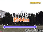 輪ゴム1本の長さは約6.5cm。680本つなぐと、伸ばさない状態で約44mになる。