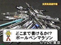 50種類のボールペンの中から1本を選び、そのボールペンでどれだけ長く書けるかを競う。