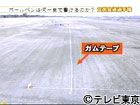 ガムテープの端を固定し、もう一方をトラックに載せ、トラックが動くと、ロールがほどけていく仕組み。選手はトラックに乗り、ガムテープに線をひたすら書き続ける。