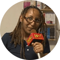 Lavita who we interviewed the other day is from America and she's a big fan of the show. She likes "Sailormoon" and has come to Japan to become a voice actress. She was super excited at the airport, the staff wanted to meet her again for another interview…