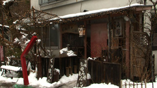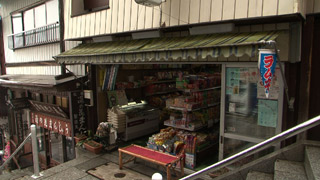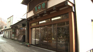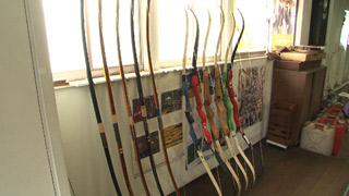 伊香保の石段街で大弓を体験できる店。ご主人が大弓をやる傍らで奥さんが射的をやっている。