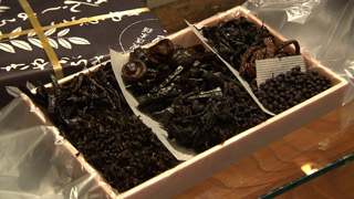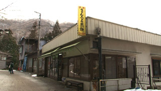 さまざまな山菜の佃煮が揃う店。店内に入ると醤油の香りがただよい、少し濃いめの佃煮はご飯にのせるのもお茶受けにも合う。