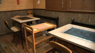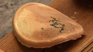 1枚1枚手焼きで作られるさんしょせんべいの店。外からも窓越しに見える場所で焼いているので、作っている様子をうかがう事ができる。