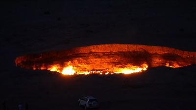トルクメニスタン東部のガルキニシュガス田。2006年に発見されたばかりのガス田で、その埋蔵量は世界で2番目の規模だ。ここに巨大ガス精製プラントが出来上がっていた。